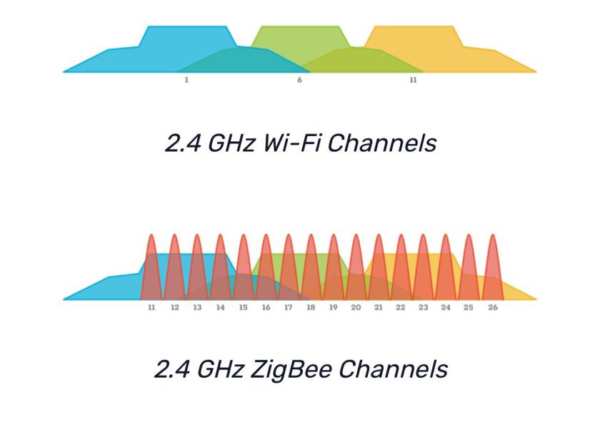 Zigbee channels compete with WiFi 2,4 GHz channels:
